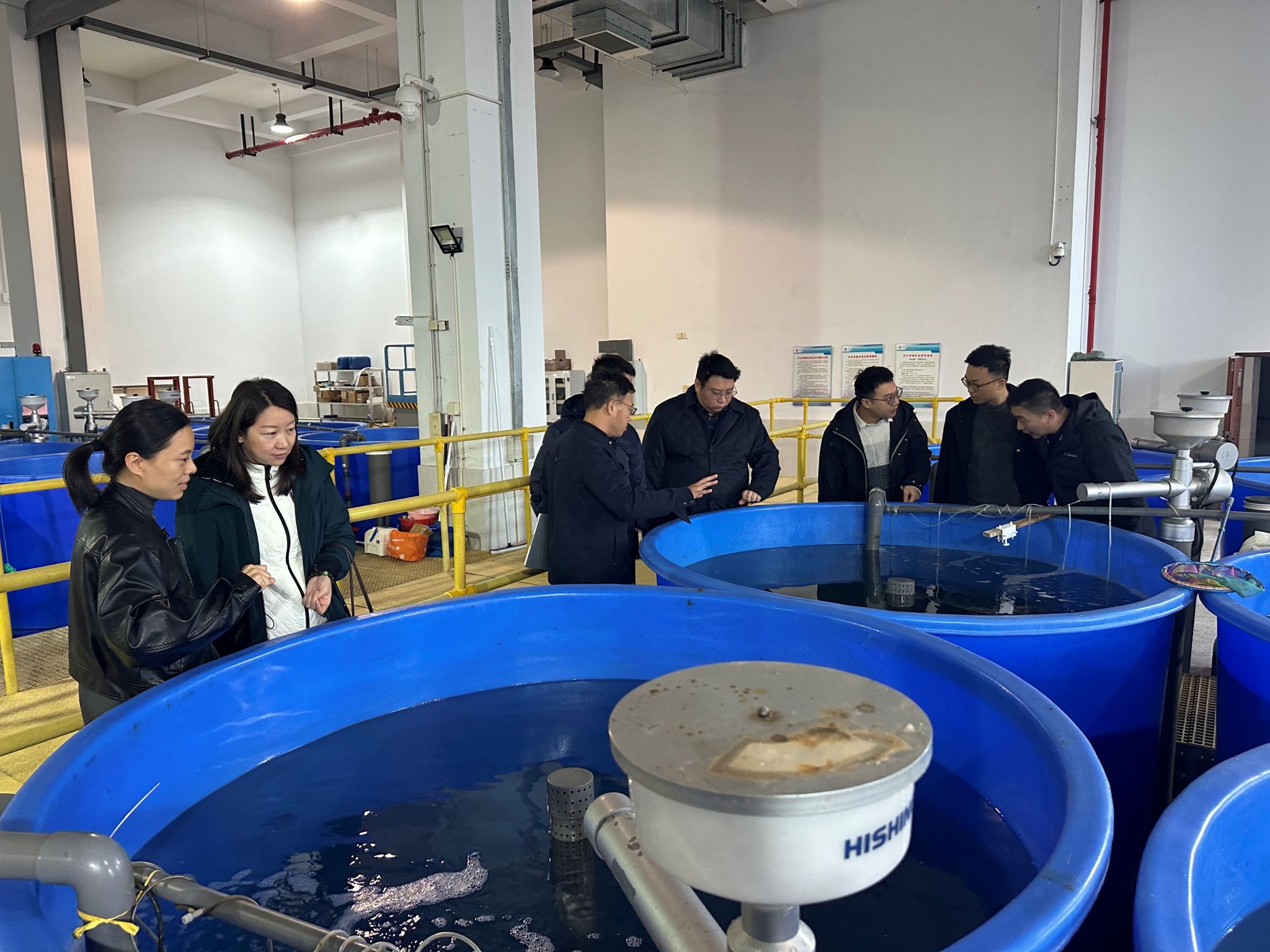 相关负责人陪同下,前往象山港湾水产育苗场和象山(宁波大学)水产种业创新研究院进行了实地考察。